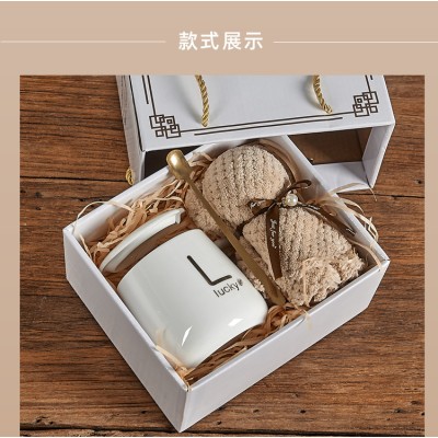 Customized Cup Gift Set: Ceramic Water Cup with Lid, Opening Ceremony Souvenir, Mug Gift Box, High-Value Appearance